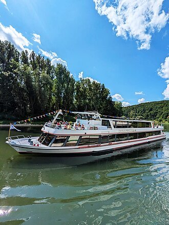 Um 10:00 Uhr heißt es "Leinen los" und das schmucke Ausflugsschiff verlässt den Hafen. Etwa sechs Stunden kreuzt das Schiff auf der Donau. Erleben Sie auch die Fahrt durch die Schleuse Bad Abbach. Das Schiff wird hier ca. 6 m abgesenkt und während der Rückfahrt wieder angehoben. Der Kapitän gibt ausführliche Erläuterungen zur Fahrstrecke und zum Schiff.
